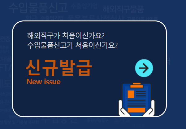 관세청 개인통관고유부호 발급 사이트 접속 "개인통관고유부호 발급" 메뉴 선택