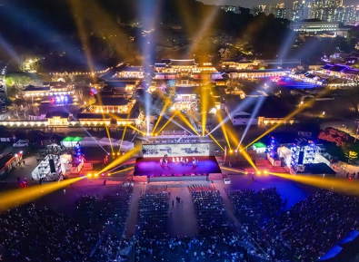 낮과는 전혀 다른 매력을 가진 화성의 밤 풍경을 배경으로, 첨단 미디어아트와 전통이 결합된 퍼포먼스가 관람객을 사로잡습니다.