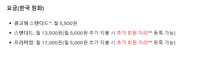 월 요금이 베이식 요금제보다 높지만, 동시에 2개의 디바이스에서 콘텐츠를 시청할 수 있습니다.