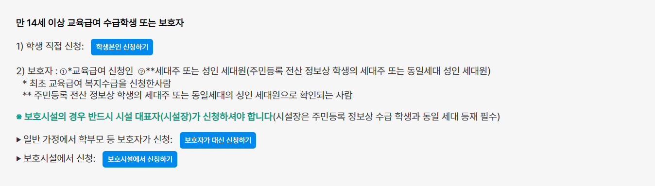 만약 신청 후 상태 확인이나 추가 문의가 필요하다면, 거주지 주민센터나 교육청 고객센터에 문의하면 신속하게 도움을 받을 수 있습니다.