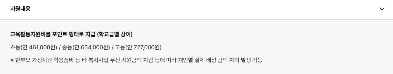 예를 들어 초등학생에게는 학용품비와 교육비를 합쳐 약 20만 원 내외의 지원이 이루어지고, 중학생과 고등학생은 학년이 올라갈수록 더 많은 금액이 지원됩니다.