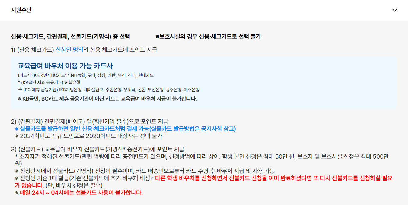 교육급여 바우처 신청 시 주의사항