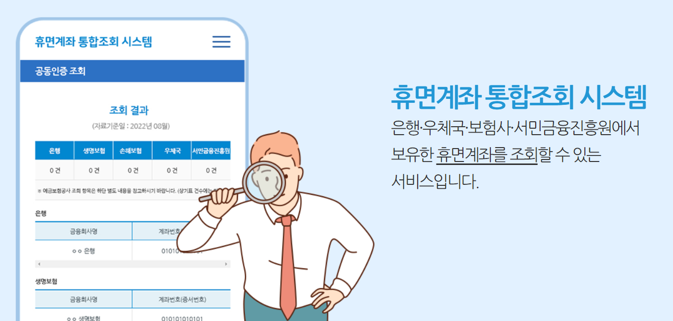 휴면계좌 조회 통합조회 시스템은 분산된 금융 정보를 한곳에서 확인할 수 있는 편리한 서비스입니다.