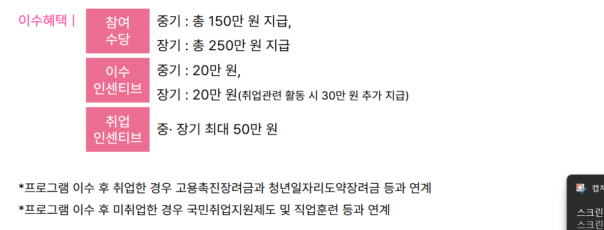 또한 참여자들에게 일정 수당과 인센티브도 지급되어 경제적 부담을 줄이면서 구직 활동을 이어갈 수 있도록 돕고 있습니다.